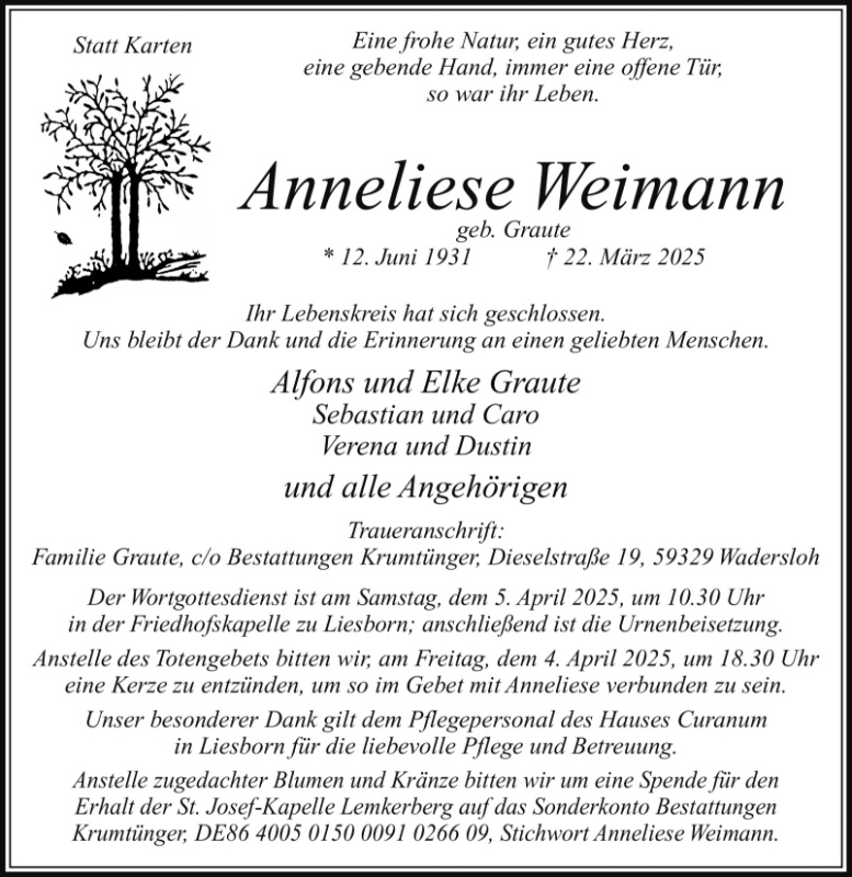 gestorben am 22. März 2025 in Wadersloh-Liesborn