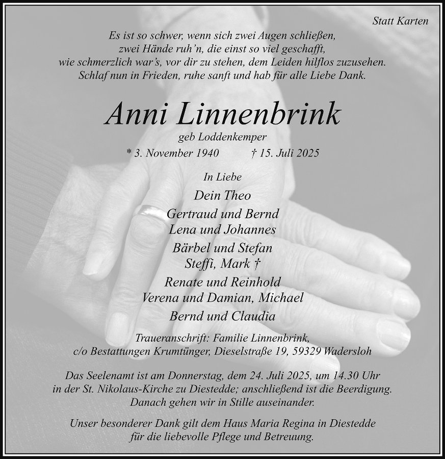 gestorben am 15. Juli 2025 in Wadersloh-Diestedde