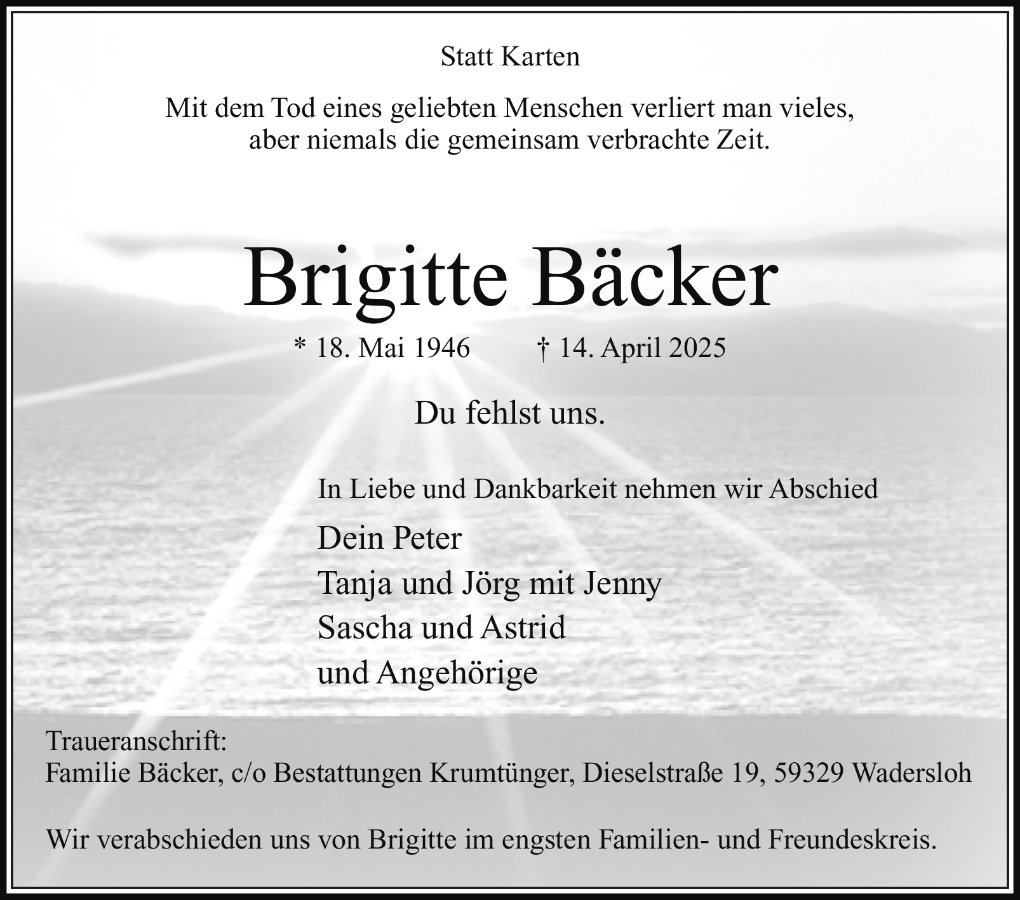 Brigitte Bäckergestorben am 14. April 2025