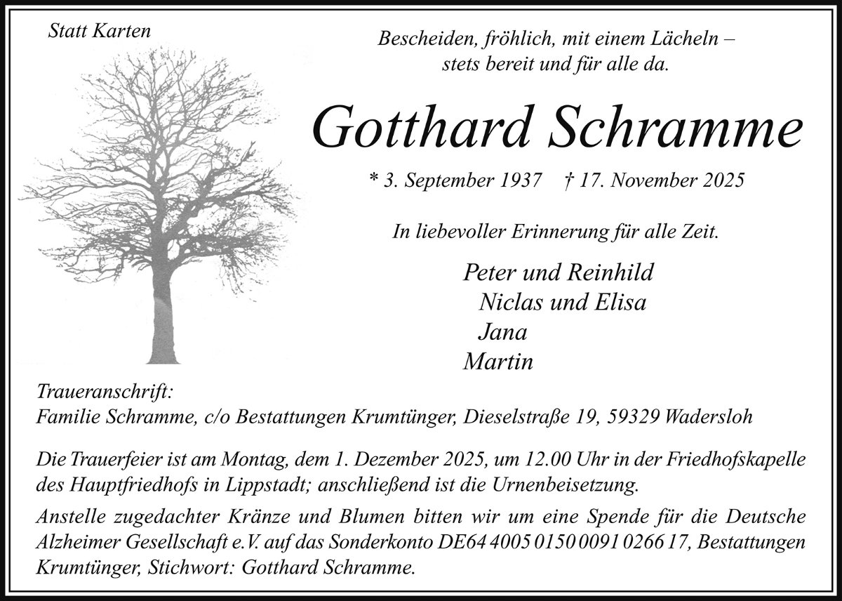 gestorben am 17. November 2025 in Wadersloh-Diestedde