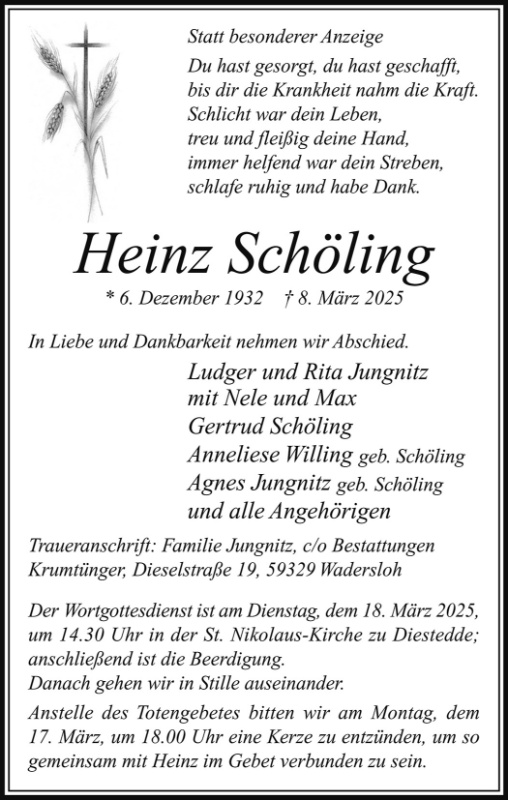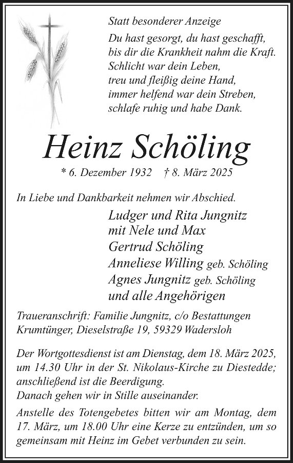 gestorben am 8. März 2025 in Wadersloh-Diestedde