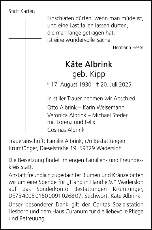gestorben am 20. Juli 2025 in Wadersloh-Liesborn