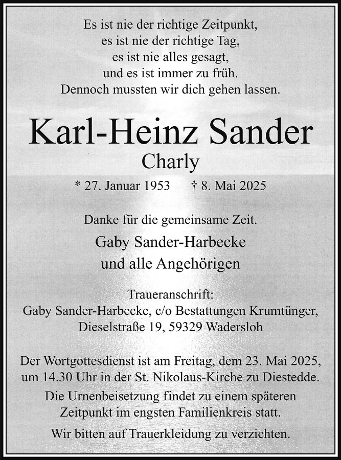 wir wünschen Ihnen von Herzen viel Kraft, dass Sie Menschen um sich haben, die Ihnen in dieser schweren Zeit beistehen und Halt geben. Zusätzlich können Sie auf dieser Gedenkseite Erinnerungen teilen und so das Andenken gemeinsam wachhalten.