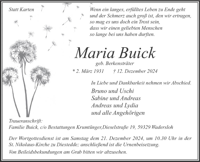 Urnenbeisetzung , Friedhof St. Margareta Diestedde