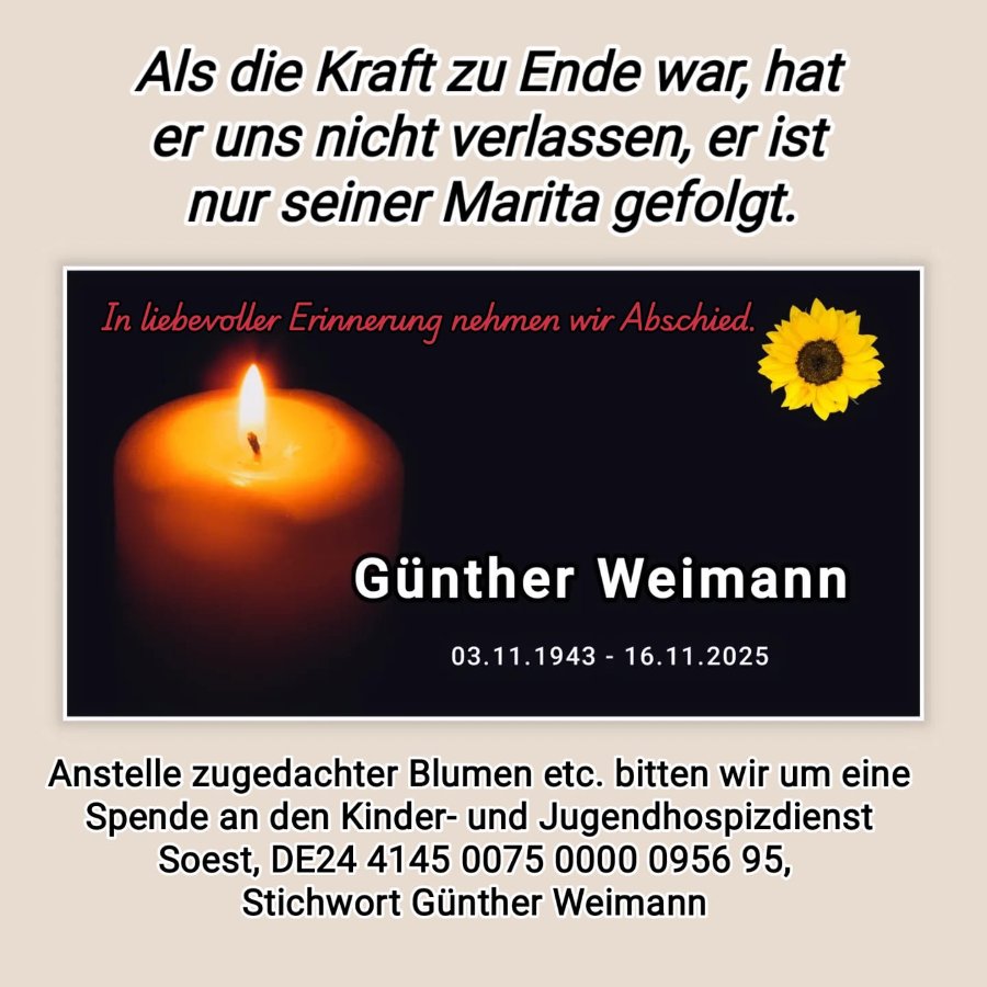 Wir wünschen Euch viel Kraft und viele schöne Gedanken an Marita.