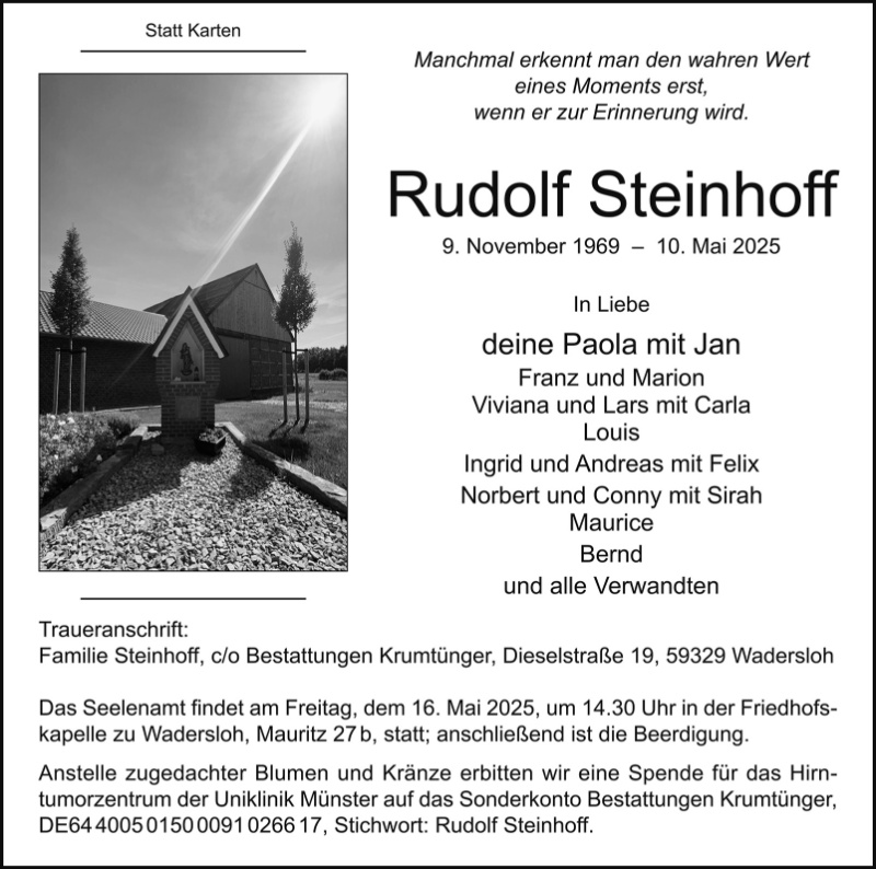 in diesen Tagen fühlen wir mit Ihnen und wünschen Ihnen von Herzen, dass Sie aus den glücklichen Erinnerungen Kraft schöpfen, um positiv in die Zukunft zu gehen. Diese Gedenkseite möge Ihnen dabei helfen, Ihre Trauer zu teilen und das Andenken gemeinsam wachzuhalten.