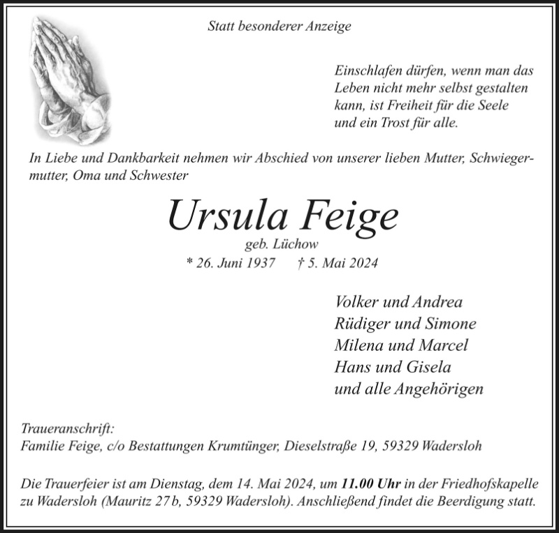 Ursula Feige geb. Lüchow