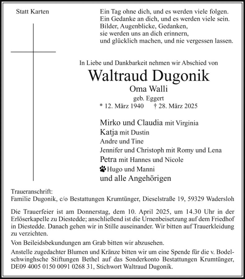 wir wünschen Ihnen für die kommende Zeit viel Kraft und dass es Ihnen gelingt, dankbar auf die positiven Erinnerungen zurückzublicken. Diese Gedenkseite möge Ihnen dabei helfen, Ihre Trauer zu teilen und das Andenken gemeinsam wachzuhalten.